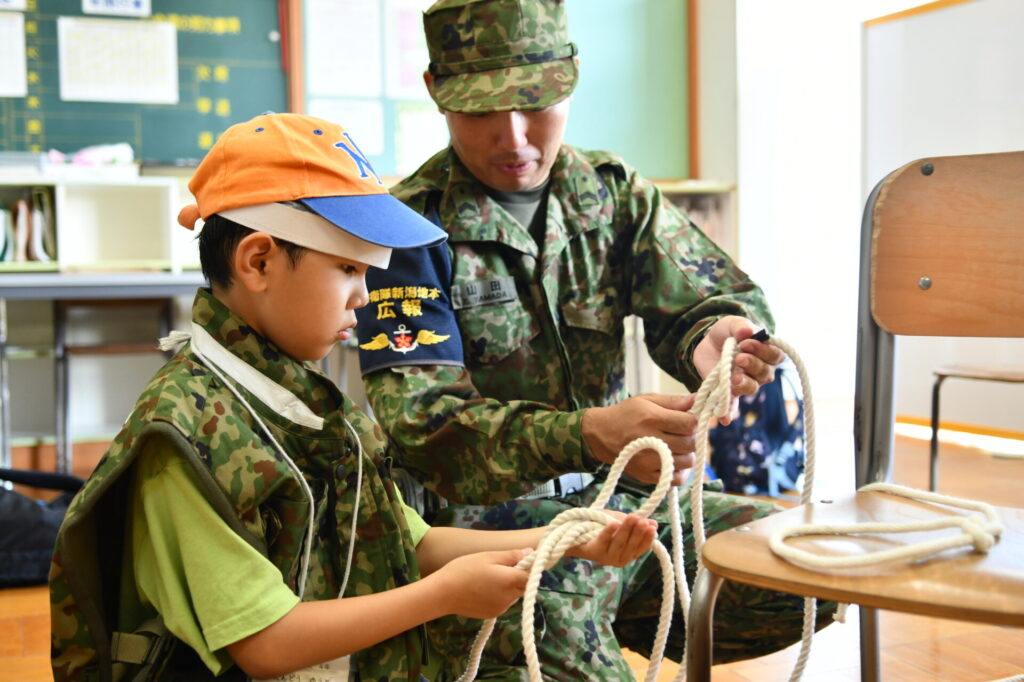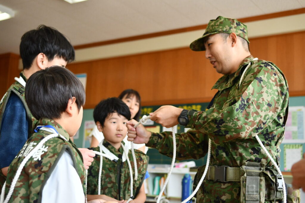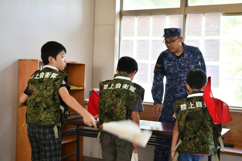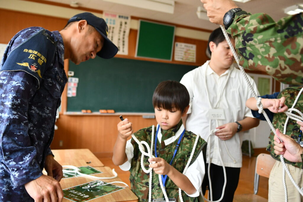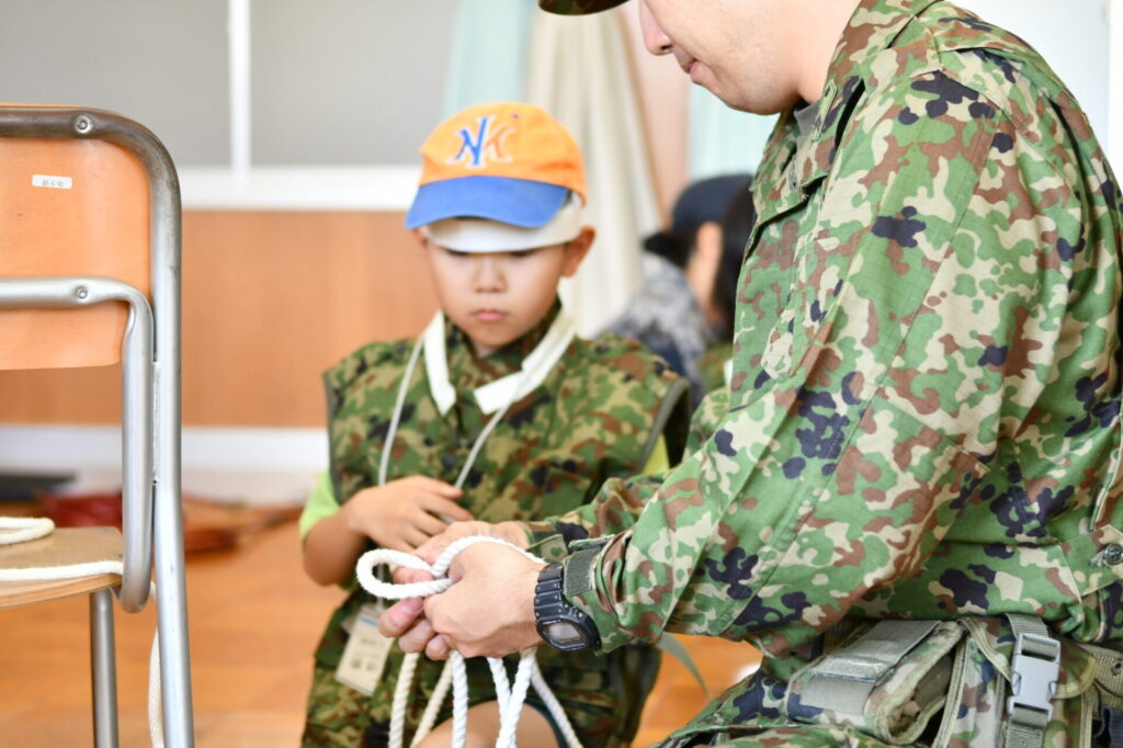 ・紐の結びかたや旗の信号をするのを体験した自衛隊の仕事はとても大変だと思いました。