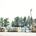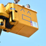 ・電力の関係する乗り物や道具を使いました。高い所で作業する乗り物に乗りました。
