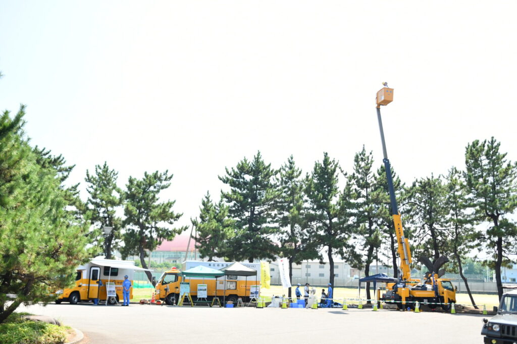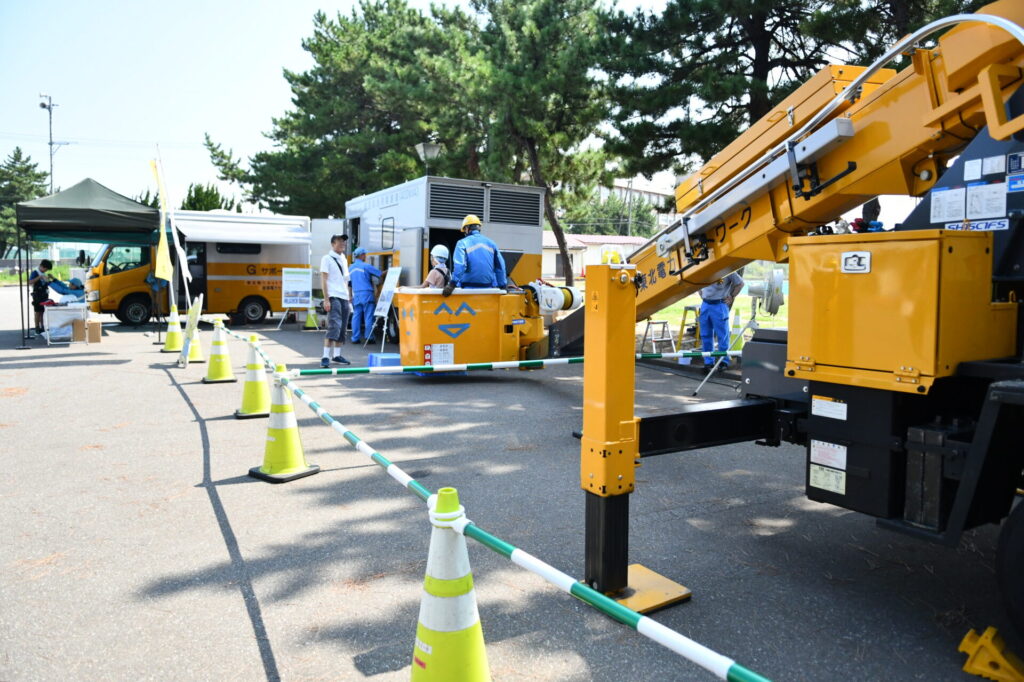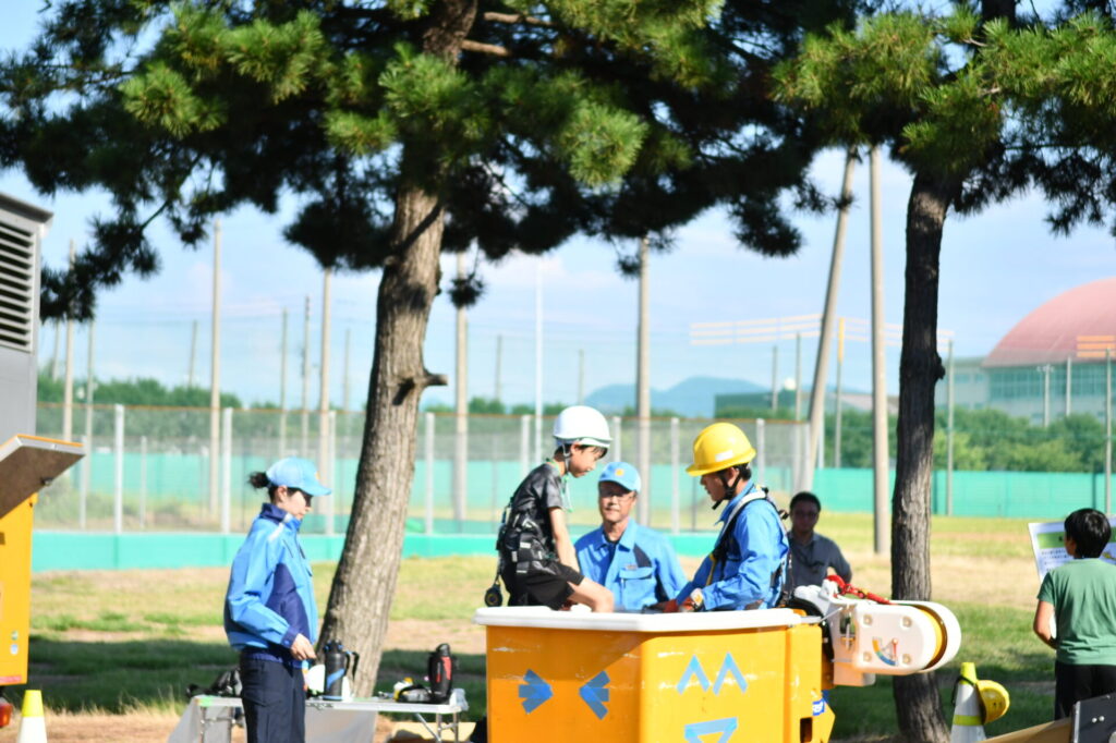 ・電力の関係する乗り物や道具を使いました。高い所で作業する乗り物に乗りました。